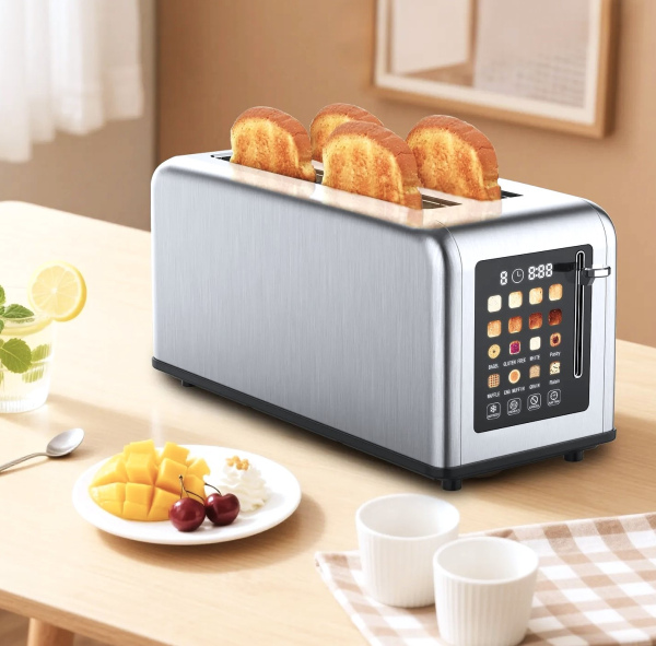 4 Slice Long Slot Color Touch Panel control Metal toaster